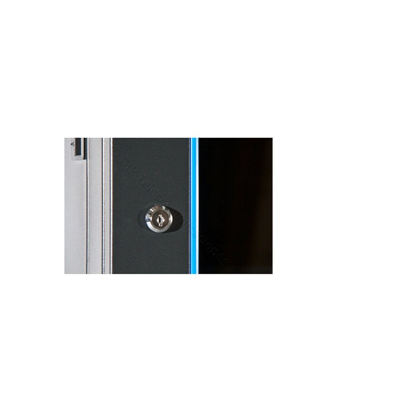 – Puerta de cristal duro serigrafiado con cerradura y un juego de llaves.