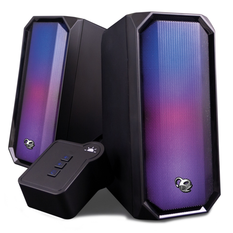 Sumérgete en el juego y completa tu setup gaming con los altavoces R205 con 6 modos de iluminación RGB (uno de los modos reacciona al sonido). Con un sonido potente (6W RMS), nítido y sin distorsión, animarás tus partidas o fiestas mientras escuchas tu música favorita. Alimentado por USB 5V 1A (cable de 1.2m de longitud), permite conexión a PC, videoconsolas, televisión, tablets u otros dispositivos mediante conexión jack 3.5mm o bluetooth 5.0, con un alcance de hasta 10 metros. Cuenta con módulo de control de modo y volumen, y control táctil del modo de iluminación.