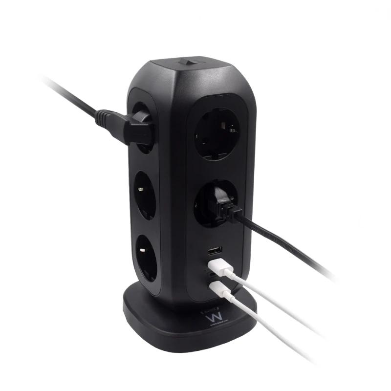 La toma de corriente de torre EW3821 tiene 11 tomas de corriente para conectar 11 dispositivos eléctricos / electrónicos. Los 2 puertos USB tipo A normales (5V / 4.5A) y sobre todo 2 puertos USB tipo C (5V / 3A) son adecuados para cargar las tabletas / smartphones y dispositivos electrónicos más modernos y actualizados. Los 2 puertos USB tipo A son adecuados para cargar teléfonos inteligentes y tabletas con una carga máxima por puerto de 2,4 A a la vez, mientras que el 2 puertos USB tipo C de última generación admite carga rápida (PD Quick Charge 3.0).