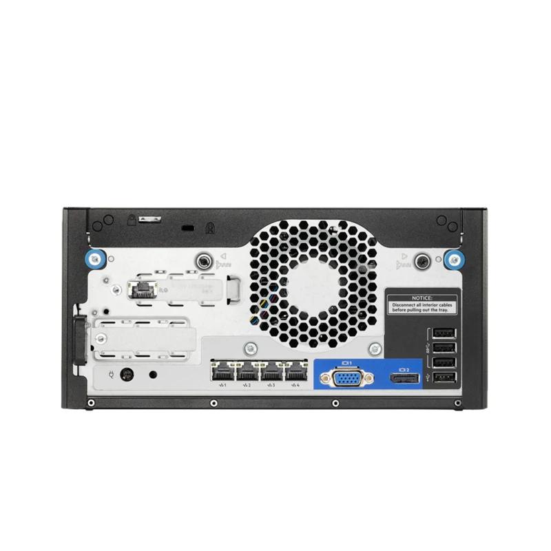 | Expansión | Bahías – 4 x bahías de almacenamiento de servidor: De intercambio no en caliente 3.5″ Ranuras – 1 x ranura (total) / 1 (libre) x PCIe 4.0 x16 – bajo perfil – 1 x ranura (total) / 1 (libre) x ranura de expansión (ranura iLO Enablement Kit) Interfaces – 1 x VGA – 1 x DisplayPort – 4 x USB 3.2 Gen 1 – Type A (3 traseros,1 interno) – 2 x USB 3.2 Gen 2 – Type A (2 frontales) – 1 x USB 2.0 – Type A (1 trasero) – 4 x LAN (Gigabit Ethernet) |