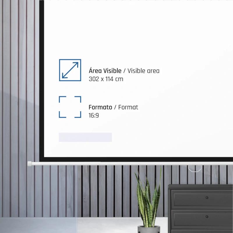 | Usos | – Pantalla de proyección para techo o pared, indicada para todo tipo de proyecciones | |