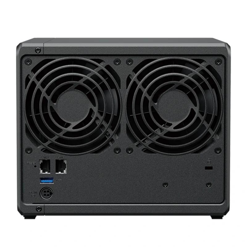 | Almacenamiento | – Receptáculo(s) de unidad: 4 – Ranuras de unidad M.2: 2 (NVMe) – Tipo de unidad compatible: 3.5″ SATA HDD 2.5″ SATA SSD M.2 2280 NVMe SSD – Unidad de intercambio en caliente *Las ranuras M.2 SSD no admiten la función de unidad intercambiable en caliente. *El tipo de disco compatible indica los discos para los que se ha probado la compatibilidad con productos de Synology. Este término no indica la velocidad máxima de conexión de cada receptáculo de disco duro. |