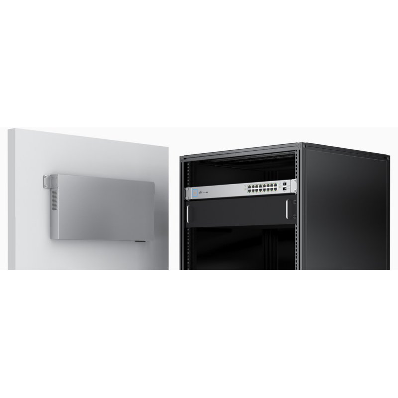 El switch de Unifi se integra con el software UniFi Controller para la gestión centralizada de los dispositivos Unifi. También cuenta con opciones de montaje versátiles, se puede colocar sobre un escritorio o montarse en pared o estante.